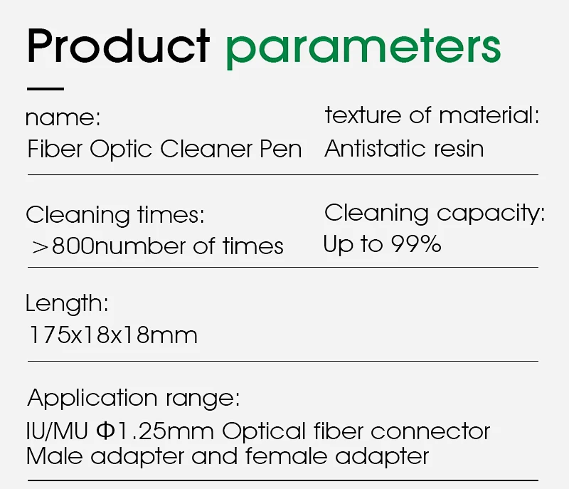 • Suitable for both male (ferrule) and female (adapter) connectors