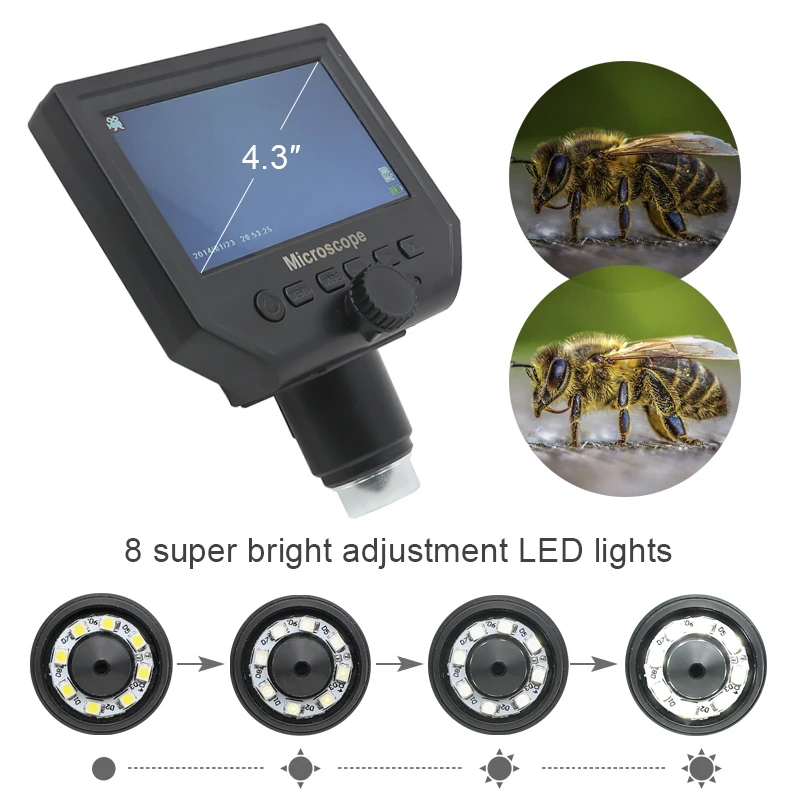 600X USB Digital Microscope 3.6MP 4.3 inch HD LCD Display Electronic Video Microscope for Phone Repair Magnifier with Stand